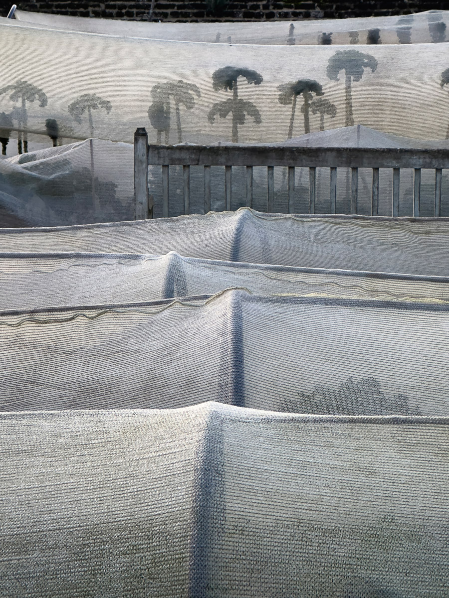 A surreal view comprised of kale under wrap, on a winter’s day.