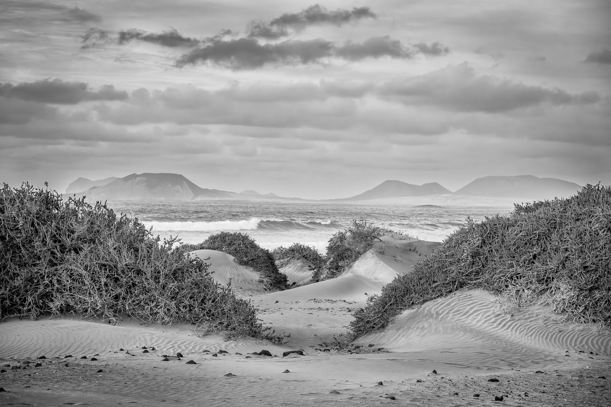 I captured this photo during an evening walk at Famara Beach. The twilight gave the scene a special atmosphere of calmness and serenity. The plants play a very important role in the stabilisation of the dunes – this landscape would look very different without them.