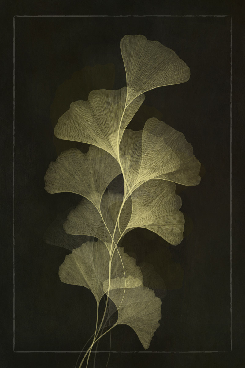 This portfolio includes images of ginkgo leaves collected on the sidewalks during the fall, eucalyptus I purchased from the local grocery store, plus ferns and heavenly bamboo, carefully gathered from my backyard. They are named as follows; I: Ginkgos, II: Eucalyptus, III: Fern Frond, IV: Heavenly Bamboo, V: Eucalyptus Buds, VI: Maidenhair Fern.